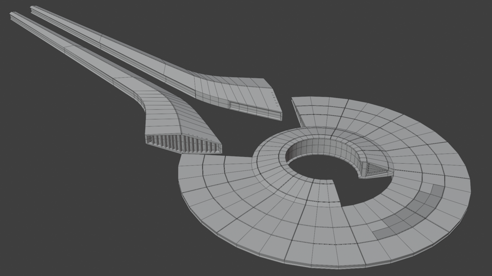 Comes as a packed Blender file with 4096 PBR textures. An FBX export is included. Textures are also included, including registries for the canonically seen USS Thant, USS Yang and USS Yousafzai. The packed Blender files has the materials set up for rendering in Eevee.