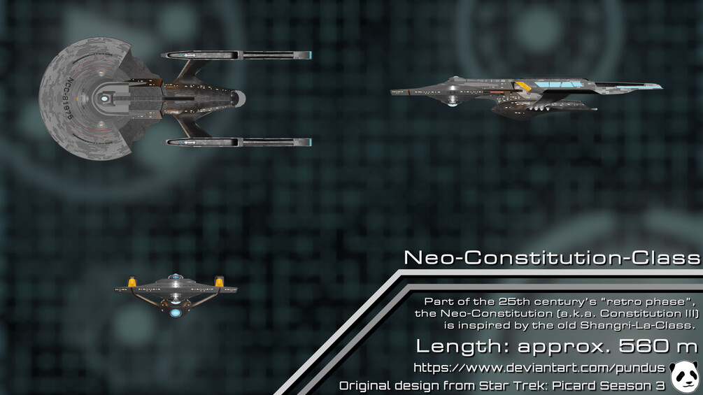 My fanmade 3D model of the Neo-Constitution-Class starship seen in the Star Trek: Picard Season 3 trailer.