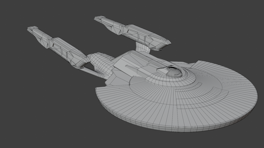Comes as a packed Blender file with 4096 PBR textures. An FBX export is included. Textures are also included, including registries for the canonically seen USS Titan, as well as a ship named after the showrunner, the USS Matalas. The packed Blender files has the materials set up for rendering in Eevee.