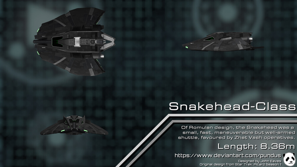 My fanmade 3D model of the Snakehead-Class starship seen in Star Trek: Picard Season 1.